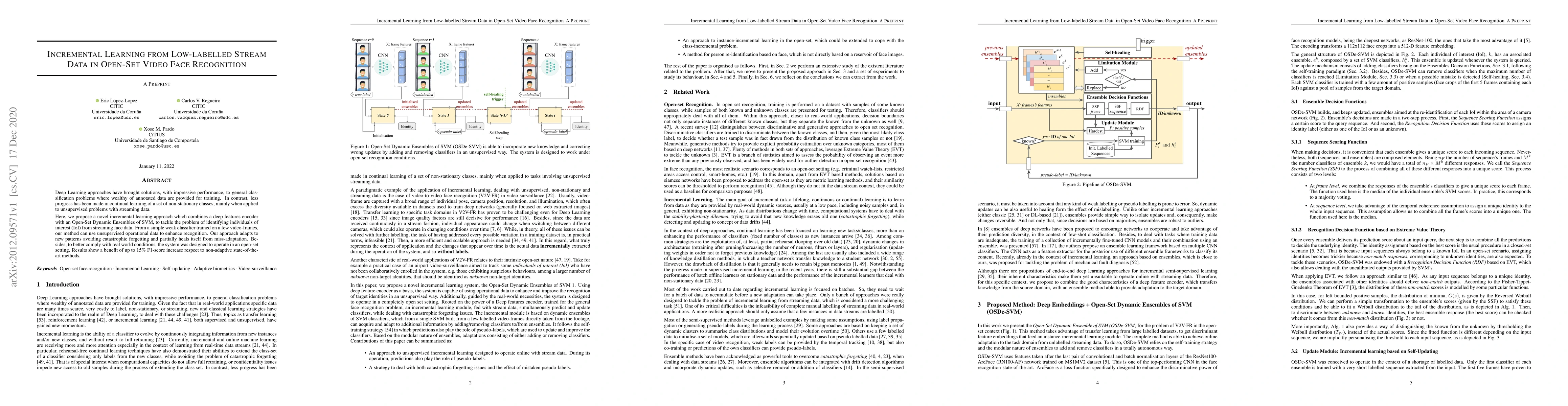 Deep Learning approaches have brought solutions, with impressive performance, to general classification problems where wealthy of annotated data are provided for training. In contrast, less progress has been made in continual learning of a set of non-stationary classes, mainly when applied to unsupervised problems with streaming data. Here, we propose a novel incremental learning approach which combines a deep features encoder with an Open-Set Dynamic Ensembles of SVM, to tackle the problem of identifying individuals of interest (IoI) from streaming face data. From a simple weak classifier trained on a few video-frames, our method can use unsupervised operational data to enhance recognition. Our approach adapts to new patterns avoiding catastrophic forgetting and partially heals itself from miss-adaptation. Besides, to better comply with real world conditions, the system was designed to operate in an open-set setting. Results show a benefit of up to 15% F1-score increase respect to non-adaptive state-of-the-art methods.