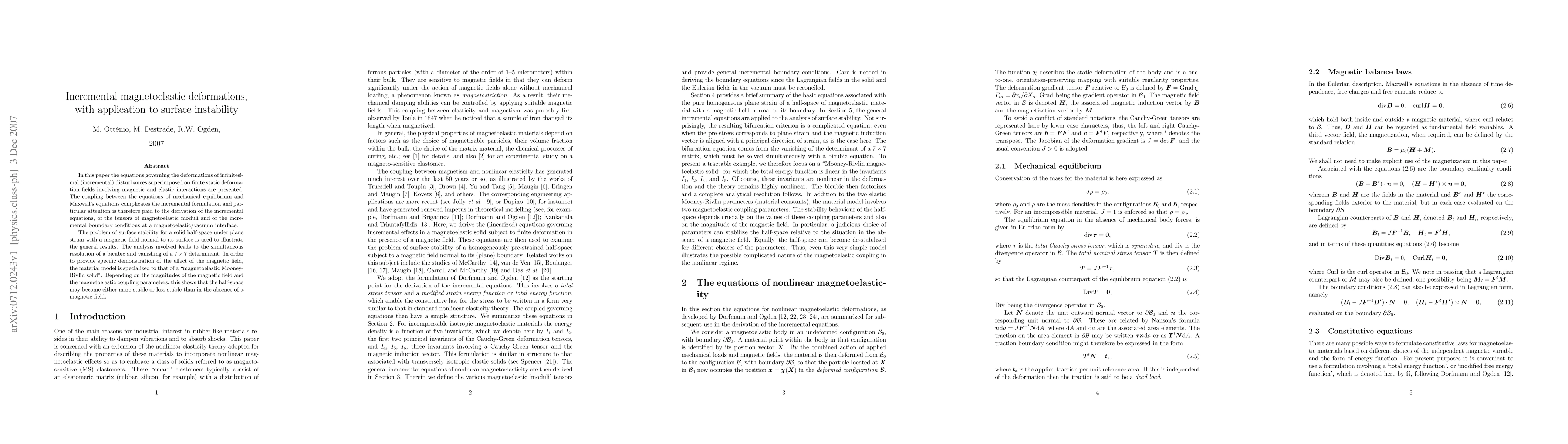 Researchers developed equations to model how magnetic fields affect a material's deformation under stress, finding that strong magnetic fields can either stabilize or destabilize the material, depending on its properties.