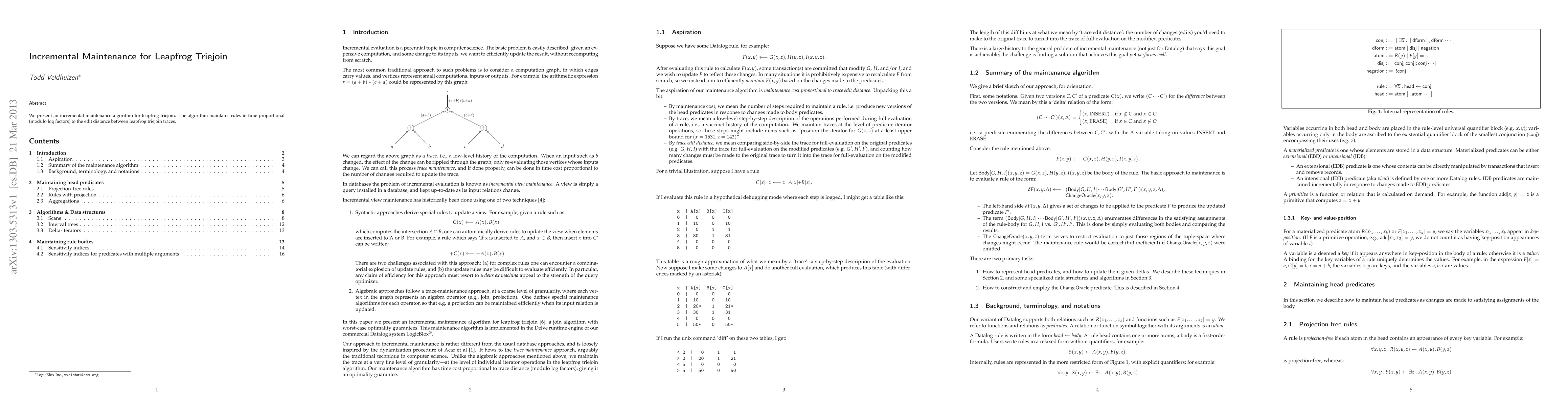 The paper proposes an incremental maintenance algorithm for leapfrog triejoin that efficiently updates rules based on the edit distance between traces, ensuring time complexity proportional to the changes. This approach enhances the adaptability and efficiency of triejoin operations.