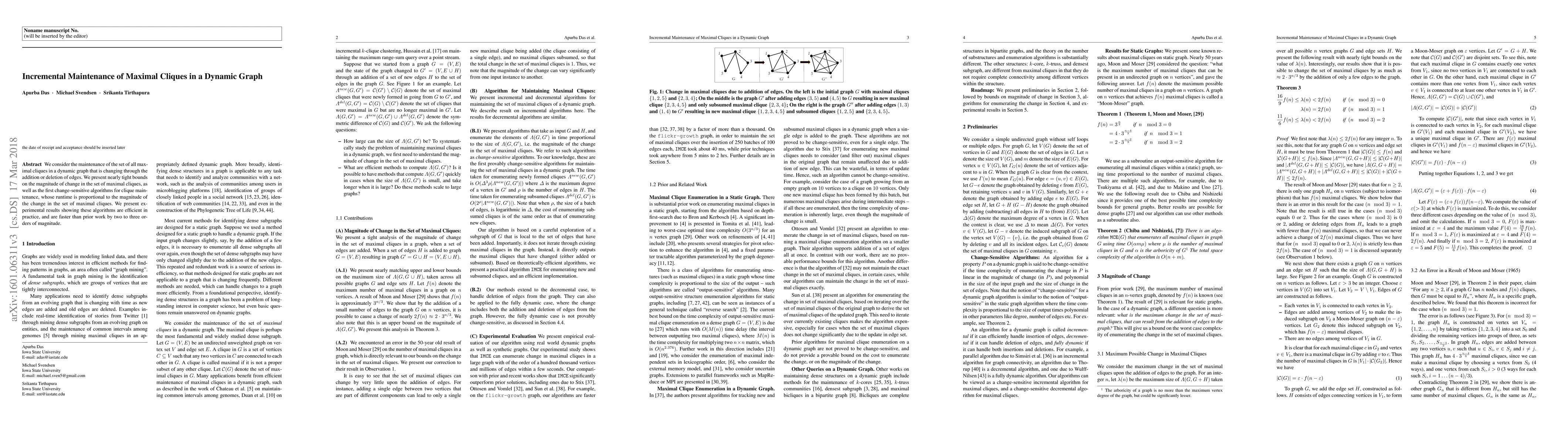 This paper presents efficient algorithms for maintaining maximal cliques in a dynamic graph, achieving runtime proportional to the change magnitude, and demonstrates significant performance improvements over previous methods. Experimental results confirm the algorithms' practical efficiency and speed.