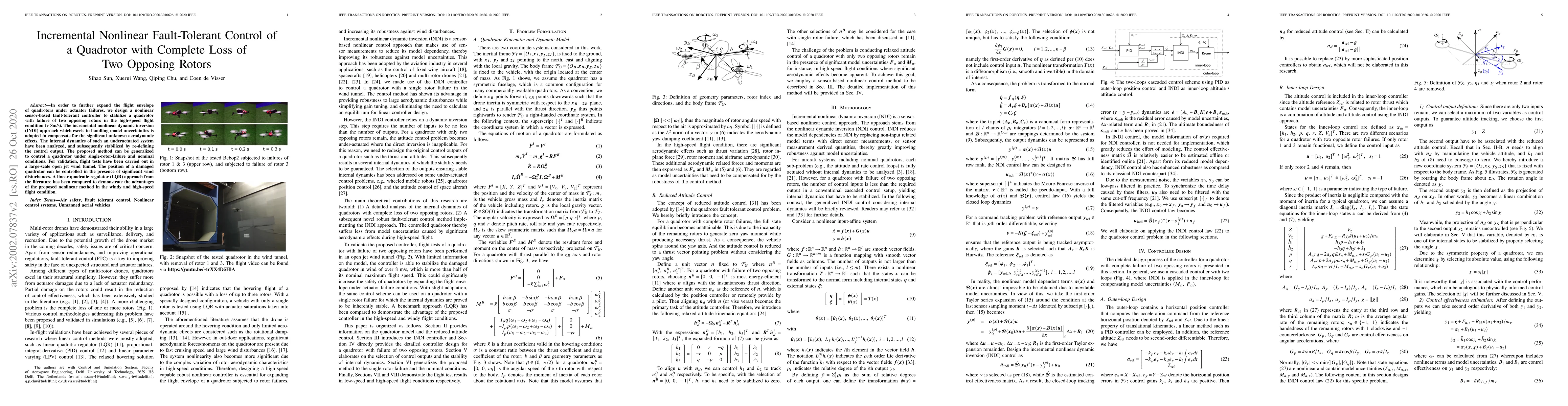 This paper proposes an incremental nonlinear fault-tolerant controller for a quadrotor experiencing complete loss of two opposing rotors, utilizing the dynamic inversion approach to handle aerodynamic uncertainties. Flight tests validate the method's effectiveness in high-speed flight with significant wind disturbances.
