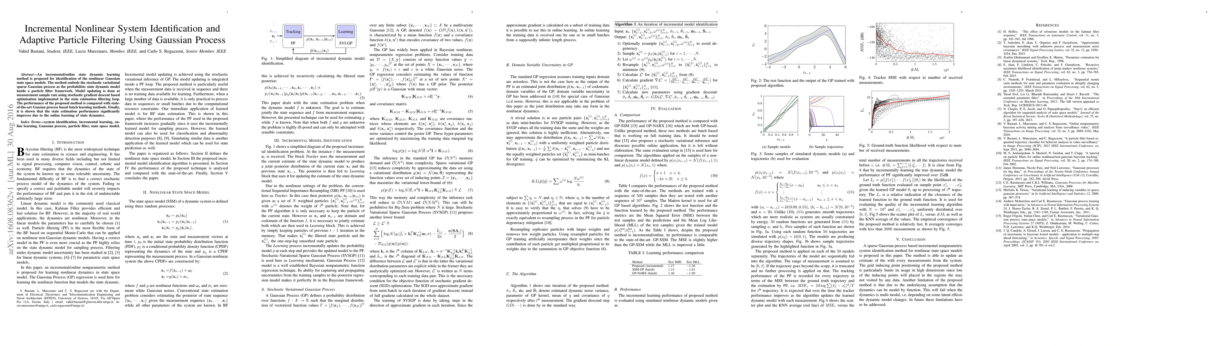 This paper proposes an incremental state dynamic learning method for identifying nonlinear Gaussian state space models using a stochastic variational sparse Gaussian process within a particle filter framework. The method updates the model in real-time using stochastic gradient descent, significantly improving state estimation performance compared to batch learning methods.