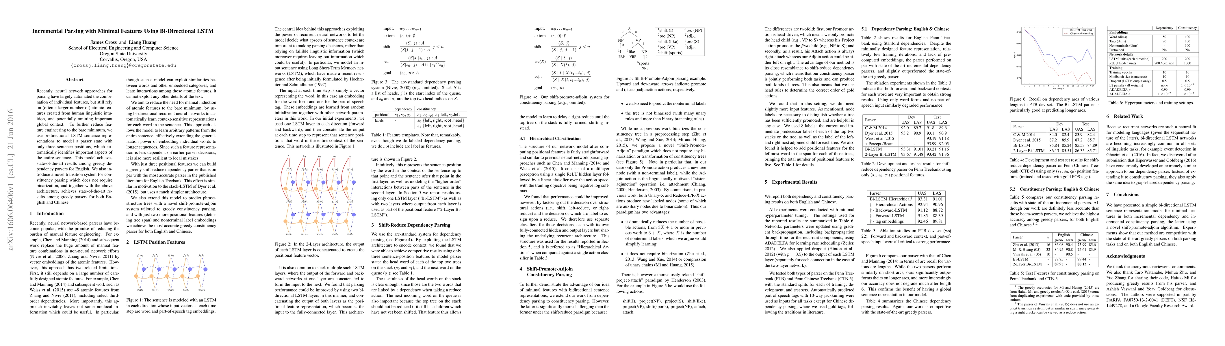 This paper proposes a neural network parser using bi-directional LSTMs to minimize feature engineering, relying on sentence representations to capture global context. It achieves state-of-the-art results for greedy dependency parsing in English and Chinese without binarization.