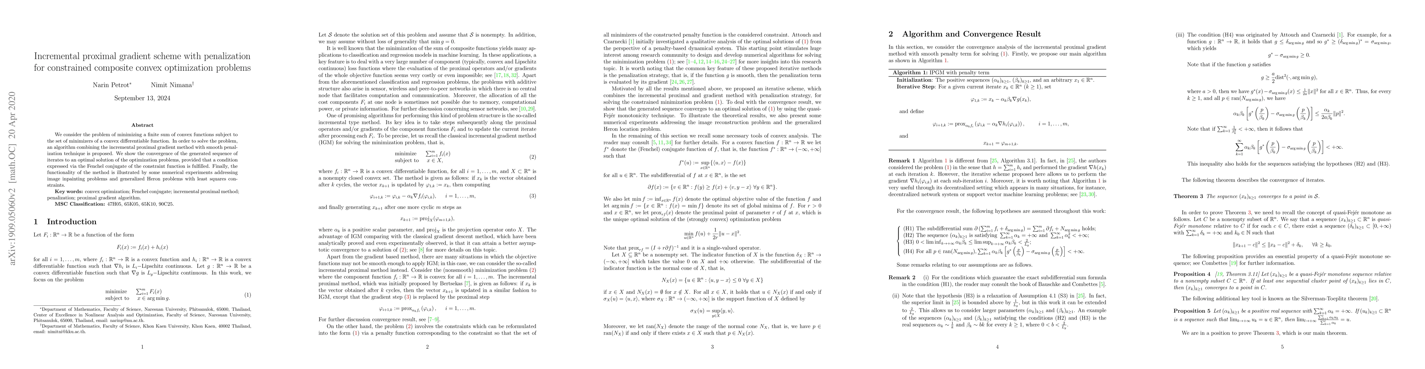 This paper proposes an incremental proximal gradient scheme with penalization for solving constrained composite convex optimization problems, demonstrating its convergence under certain conditions and validating its effectiveness through numerical experiments on image inpainting and generalized Heron problems.