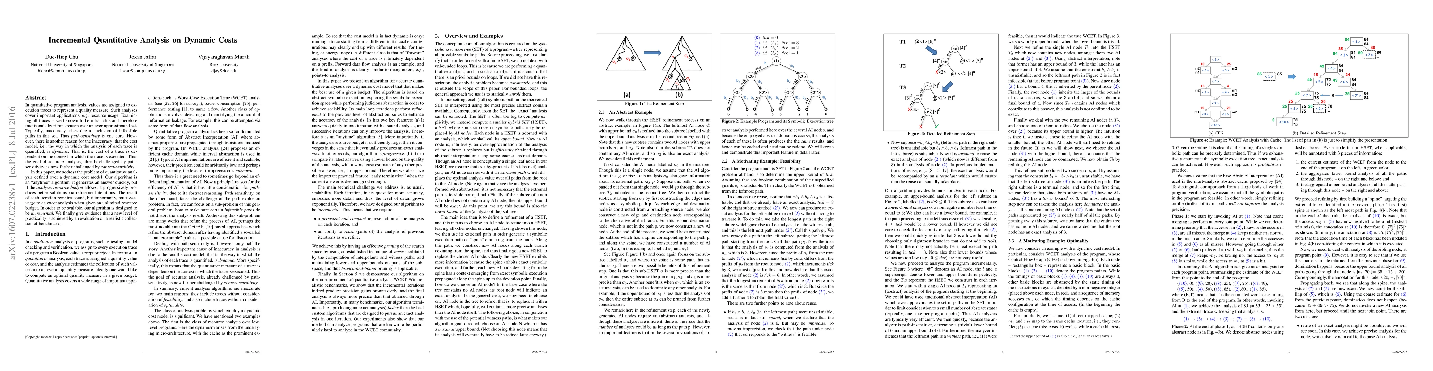 A new algorithm for dynamic cost analysis in software program analysis is proposed, designed to be scalable and incremental, and provides a practical solution to accurate analysis under limited resource budgets.