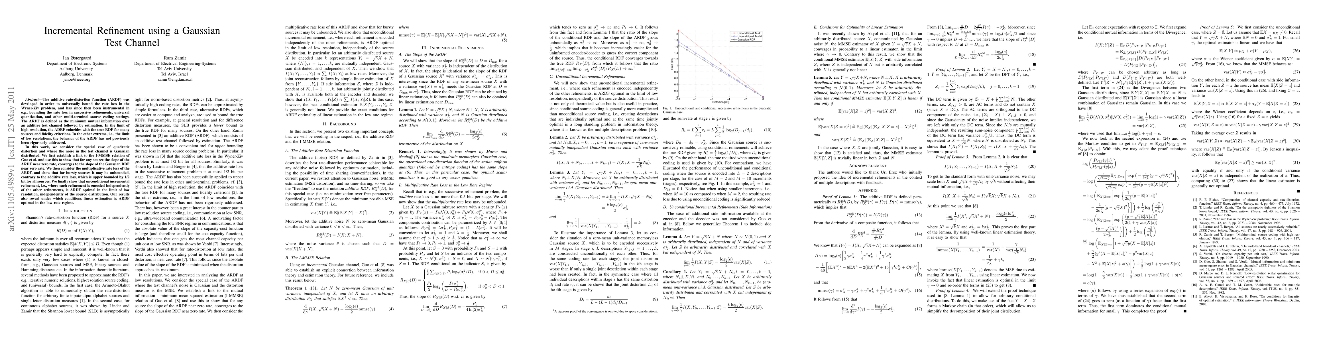 The additive rate-distortion function (ARDF) was developed in order to universally bound the rate loss in the Wyner-Ziv problem, and has since then been instrumental in e.g., bounding the rate loss in successive refinements, universal quantization, and other multi-terminal source coding settings. The ARDF is defined as the minimum mutual information over an additive test channel followed by estimation. In the limit of high resolution, the ADRF coincides with the true RDF for many sources and fidelity criterions. In the other extreme, i.e., the limit of low resolutions, the behavior of the ARDF has not previously been rigorously addressed. In this work, we consider the special case of quadratic distortion and where the noise in the test channel is Gaussian distributed. We first establish a link to the I-MMSE relation of Guo et al. and use this to show that for any source the slope of the ARDF near zero rate, converges to the slope of the Gaussian RDF near zero rate. We then consider the multiplicative rate loss of the ARDF, and show that for bursty sources it may be unbounded, contrary to the additive rate loss, which is upper bounded by 1/2 bit for all sources. We finally show that unconditional incremental refinement, i.e., where each refinement is encoded independently of the other refinements, is ARDF optimal in the limit of low resolution, independently of the source distribution. Our results also reveal under which conditions linear estimation is ARDF optimal in the low rate regime.