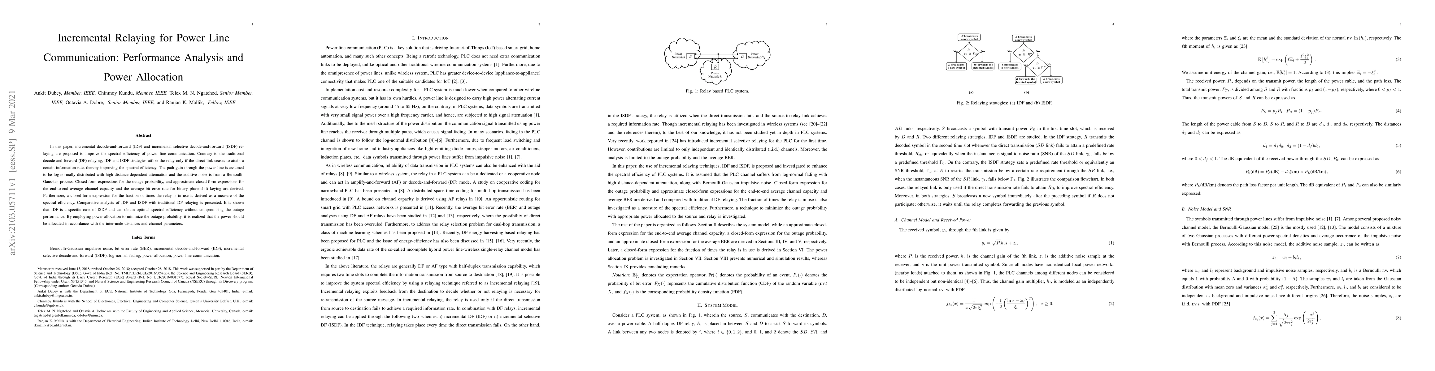 This paper proposes incremental relaying strategies (IDF and ISDF) to enhance spectral efficiency in power line communication, deriving closed-form expressions for outage probability and capacity. Comparative analysis shows that IDF achieves optimal spectral efficiency without compromising performance, and power allocation should consider inter-node distances and channel parameters.