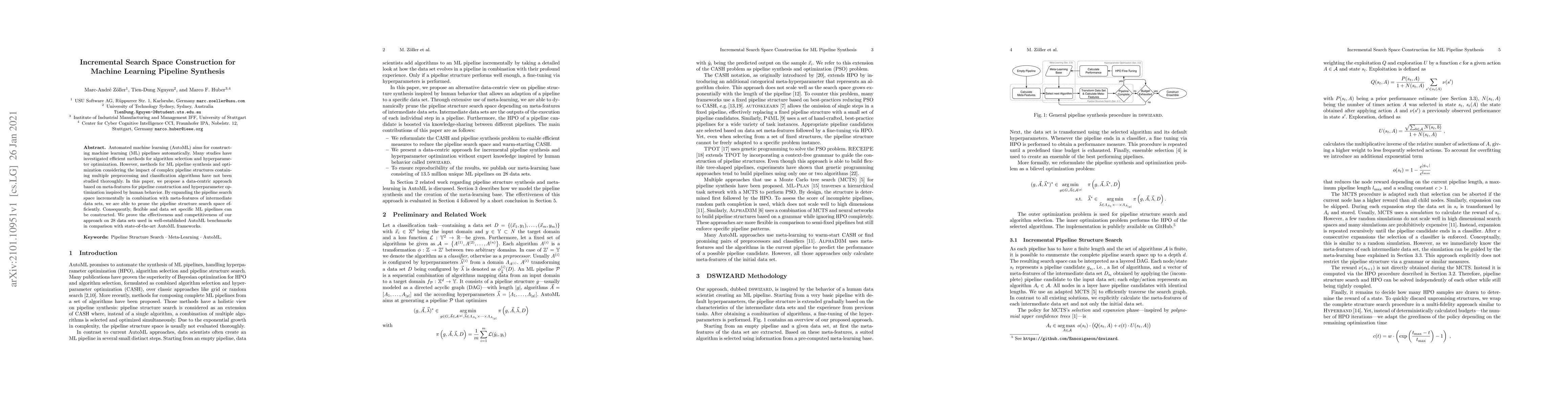 This paper proposes a data-centric approach for constructing and optimizing machine learning pipelines using meta-features, which incrementally expands the search space to efficiently prune unnecessary structures. The method is shown to be effective and competitive on 28 benchmark datasets compared to state-of-the-art AutoML frameworks.