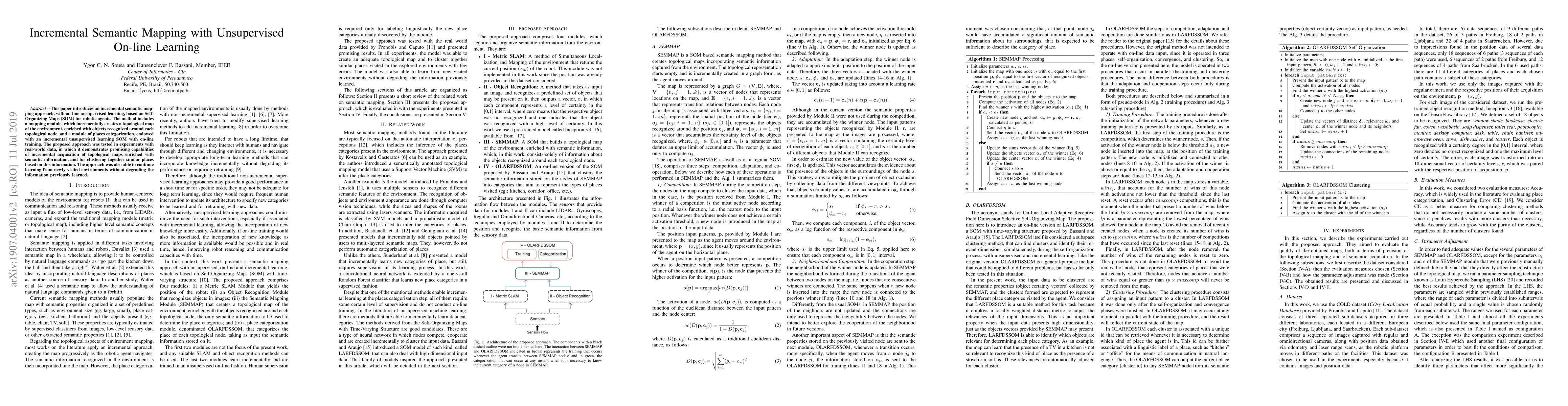 This paper presents an incremental semantic mapping method using unsupervised online learning with Self-Organizing Maps for robotic agents, showing effective incremental map creation and place categorization with real-world data. The approach maintains previously learned information while adapting to new environments.
