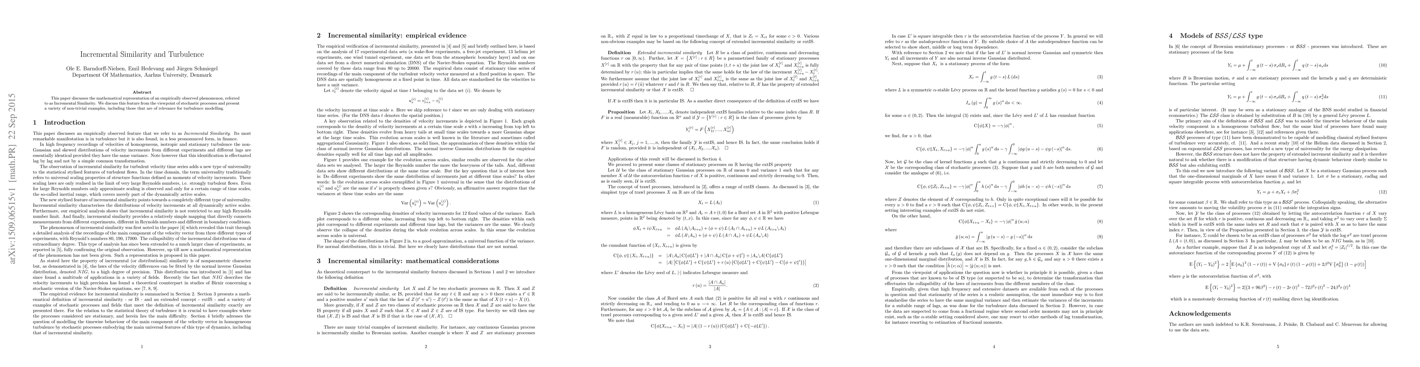 This paper discusses the mathematical representation of an empirically observed phenomenon, referred to as Incremental Similarity. We discuss this feature from the viewpoint of stochastic processes and present a variety of non-trivial examples, including those that are of relevance for turbulence modelling.