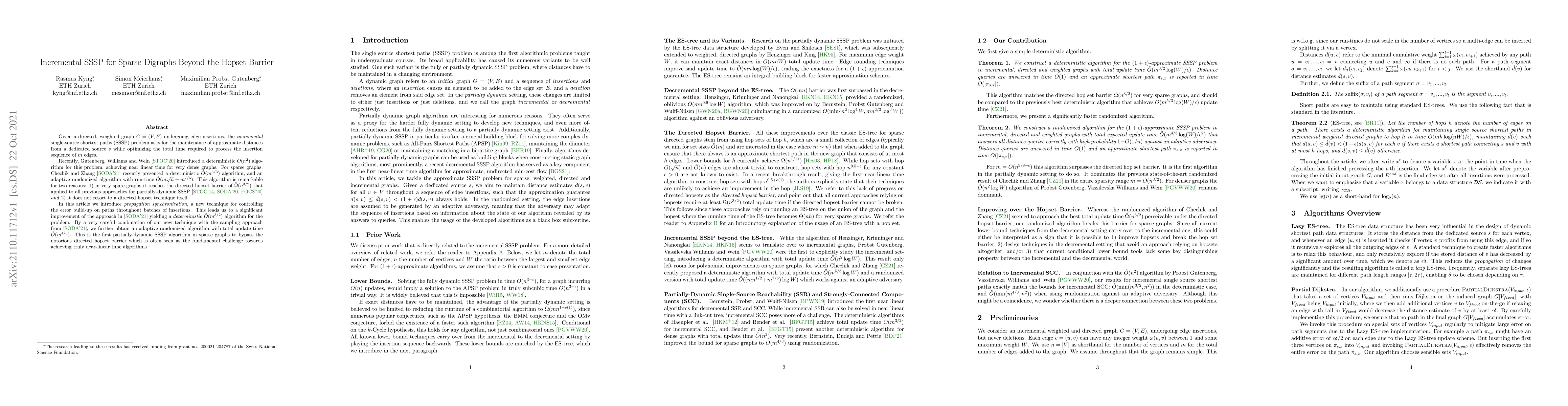 This paper presents a new technique called "propagation synchronization" to improve incremental single-source shortest paths (SSSP) maintenance in sparse directed graphs. It achieves a deterministic $\tilde{O}(m^{3/2})$ algorithm and an adaptive randomized algorithm with $\tilde{O}(m^{4/3})$ update time, surpassing the directed hopset barrier for the first time.