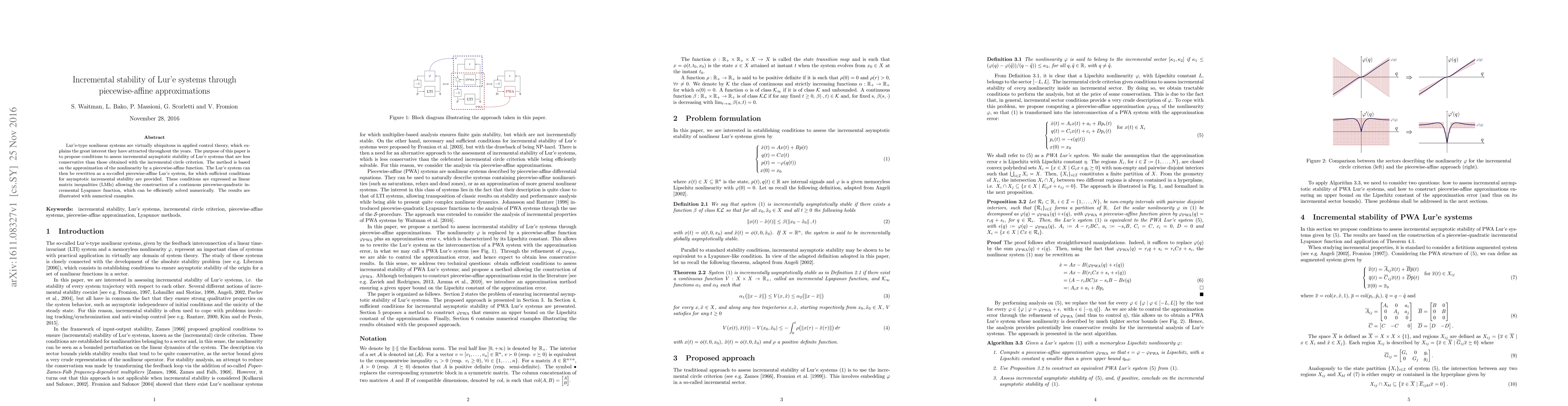 This paper proposes conditions for incremental asymptotic stability of Lur'e systems using piecewise-affine approximations to reduce conservatism compared to the incremental circle criterion. It reformulates the system and provides LMIs for stability analysis, enabling efficient numerical solutions.
