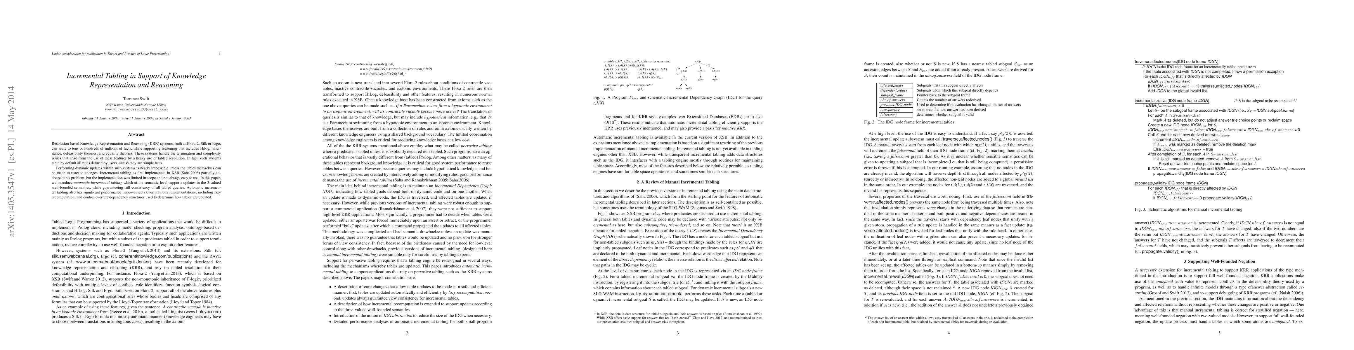 This paper introduces transparent incremental tabling for efficient updates in knowledge representation and reasoning systems, improving performance over previous implementations.