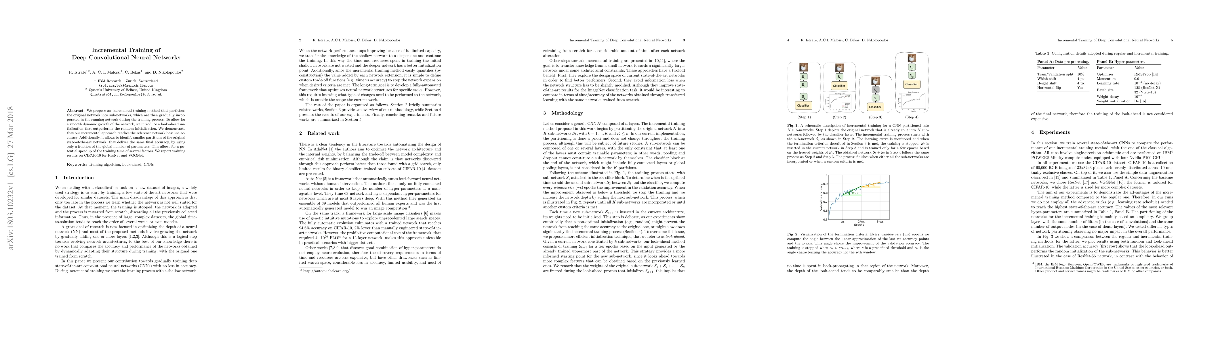 This paper proposes an incremental training method for deep convolutional neural networks that allows for dynamic growth of the network while maintaining accuracy, potentially leading to speedup in training time.