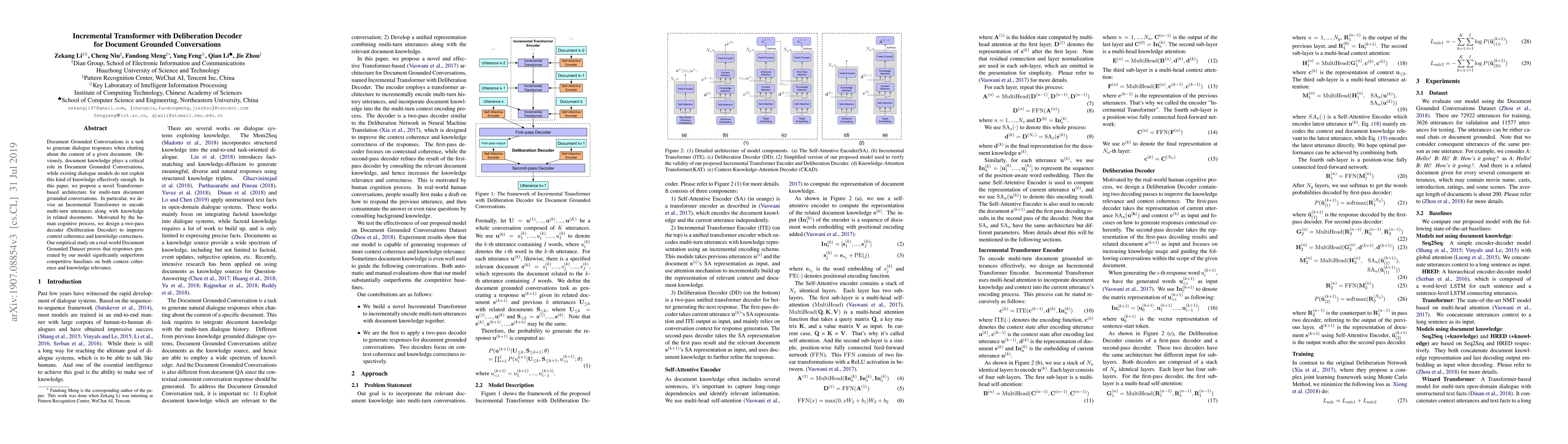 This paper introduces an Incremental Transformer with a Deliberation Decoder for generating dialogue responses in multi-turn conversations grounded in documents. The proposed model effectively encodes document knowledge and improves context coherence and knowledge relevance, outperforming existing baselines on a real-world Document Grounded Dataset.
