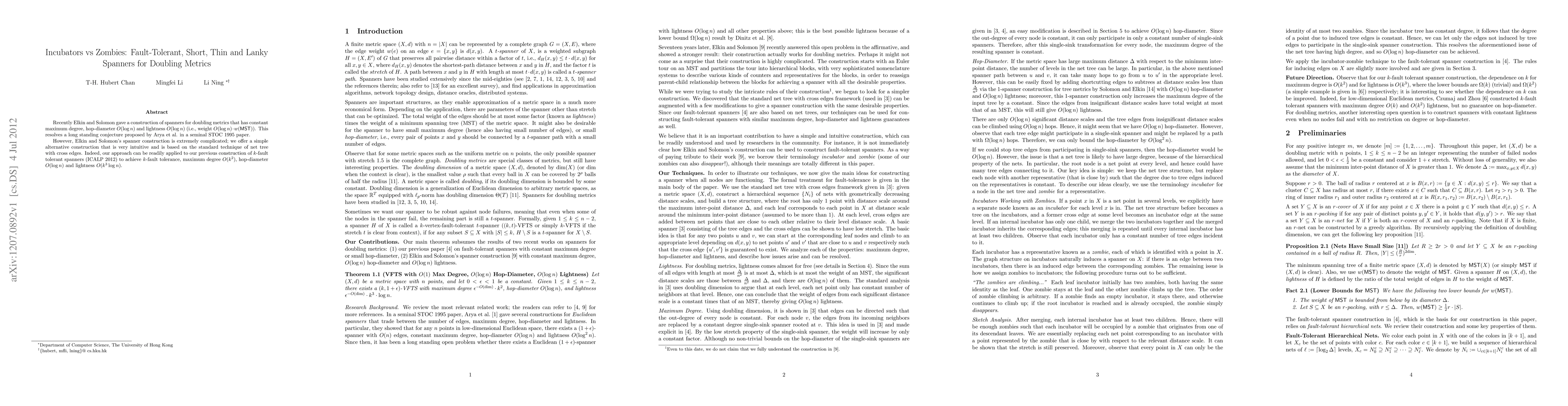 Researchers create a simpler alternative to an existing spanner construction for doubling metrics that improves on previous constructions by achieving k-fault tolerance with better parameters.