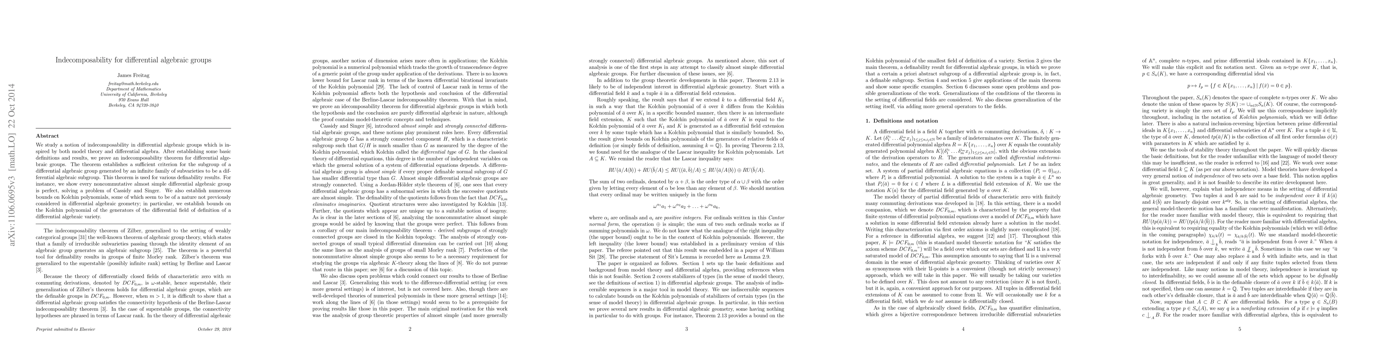 This paper explores the concept of indecomposability in differential algebraic groups, establishing a criterion for subgroups generated by infinite subvarieties. The authors prove an indecomposability theorem that leads to definability results, including the perfection of noncommutative almost simple differential algebraic groups and new bounds on Kolchin polynomials.