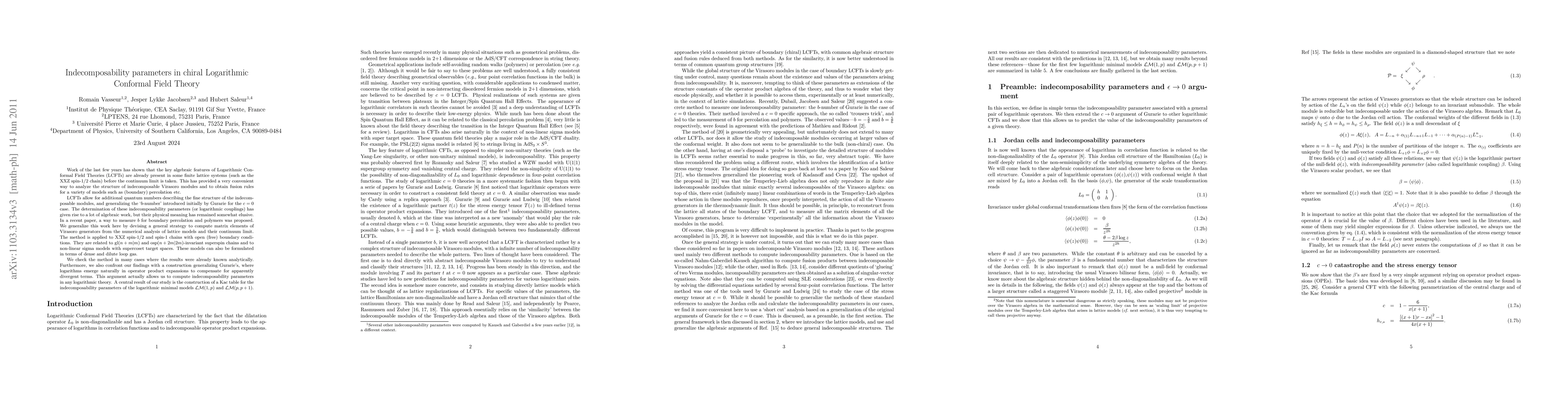 Work of the last few years has shown that the key algebraic features of Logarithmic Conformal Field Theories (LCFTs) are already present in some finite lattice systems (such as the XXZ spin-1/2 chain) before the continuum limit is taken. This has provided a very convenient way to analyze the structure of indecomposable Virasoro modules and to obtain fusion rules for a variety of models such as (boundary) percolation etc. LCFTs allow for additional quantum numbers describing the fine structure of the indecomposable modules, and generalizing the `b-number' introduced initially by Gurarie for the c=0 case. The determination of these indecomposability parameters has given rise to a lot of algebraic work, but their physical meaning has remained somewhat elusive. In a recent paper, a way to measure b for boundary percolation and polymers was proposed. We generalize this work here by devising a general strategy to compute matrix elements of Virasoro generators from the numerical analysis of lattice models and their continuum limit. The method is applied to XXZ spin-1/2 and spin-1 chains with open (free) boundary conditions. They are related to gl(n+m|m) and osp(n+2m|2m)-invariant superspin chains and to nonlinear sigma models with supercoset target spaces. These models can also be formulated in terms of dense and dilute loop gas. We check the method in many cases where the results were already known analytically. Furthermore, we also confront our findings with a construction generalizing Gurarie's, where logarithms emerge naturally in operator product expansions to compensate for apparently divergent terms. This argument actually allows us to compute indecomposability parameters in any logarithmic theory. A central result of our study is the construction of a Kac table for the indecomposability parameters of the logarithmic minimal models LM(1,p) and LM(p,p+1).