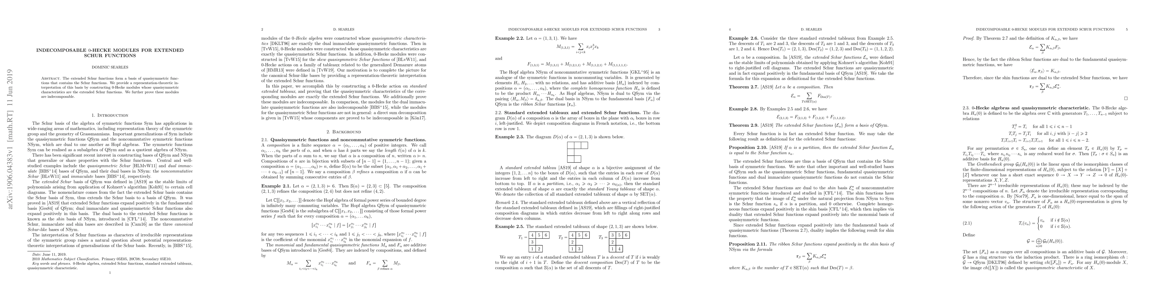 This paper constructs indecomposable $0$-Hecke modules that correspond to the quasisymmetric characteristics of extended Schur functions, providing a representation-theoretic interpretation of this important basis of quasisymmetric functions. The authors demonstrate the indecomposability of these modules, enhancing our understanding of their structure.