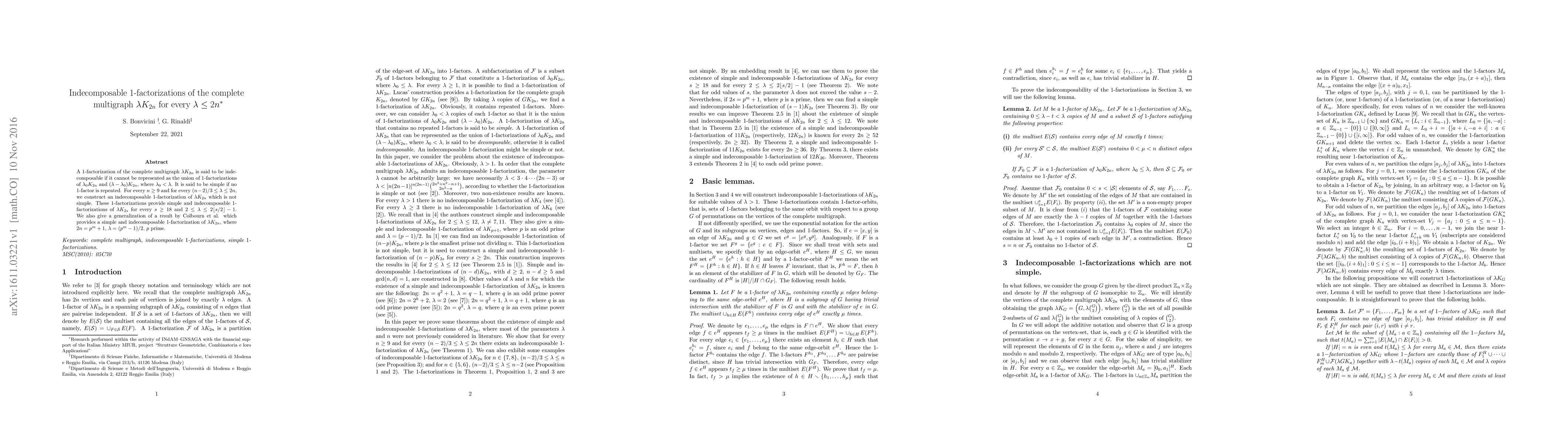 The paper constructs indecomposable 1-factorizations of lambda K_{2n} for every n >= 9 and certain lambda values, providing simple and indecomposable factorizations of smaller graphs.