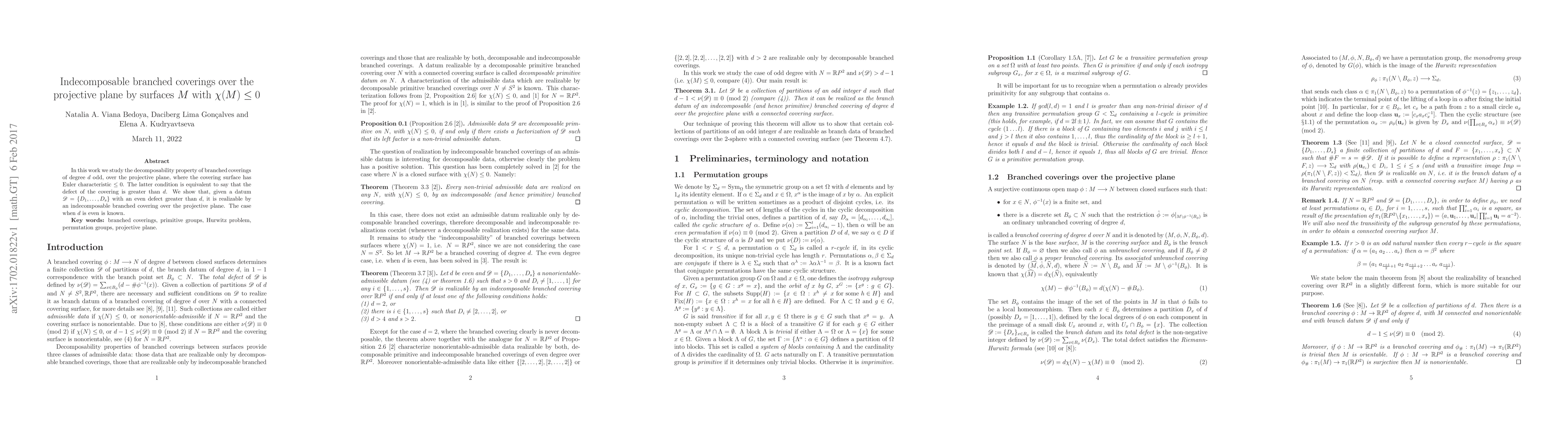 This paper investigates the decomposability of odd-degree branched coverings over the projective plane with covering surfaces having Euler characteristic $\leq 0$. It demonstrates that a datum with an even defect greater than the degree can realize an indecomposable branched covering, extending known results for even degrees.