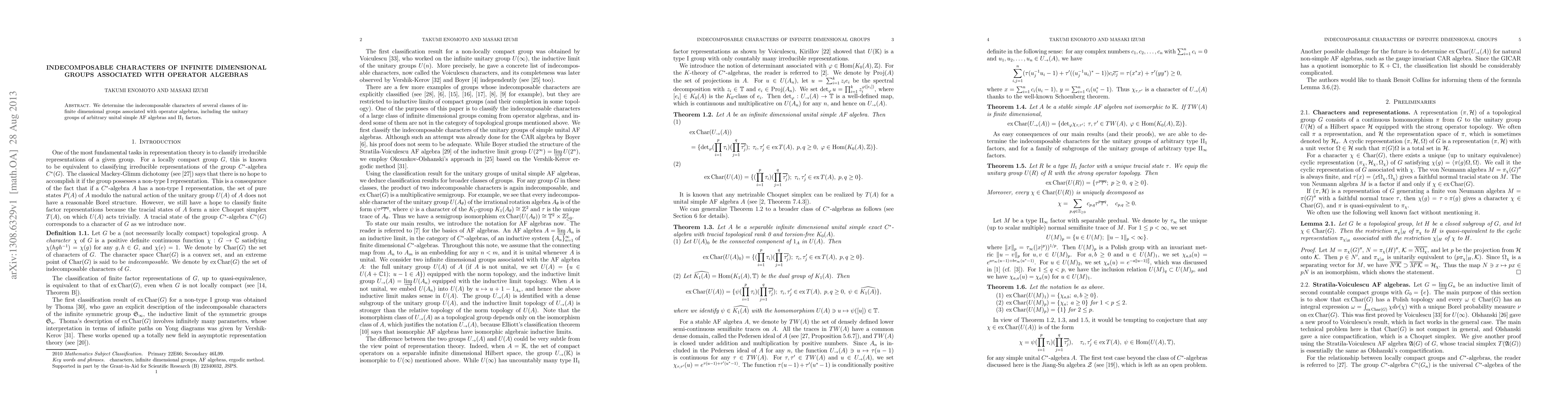 Summary: This paper identifies the indecomposable characters of infinite-dimensional groups linked to operator algebras, focusing on unitary groups of simple AF algebras and II$_1$ factors. The findings provide deeper insights into the structure of these groups.