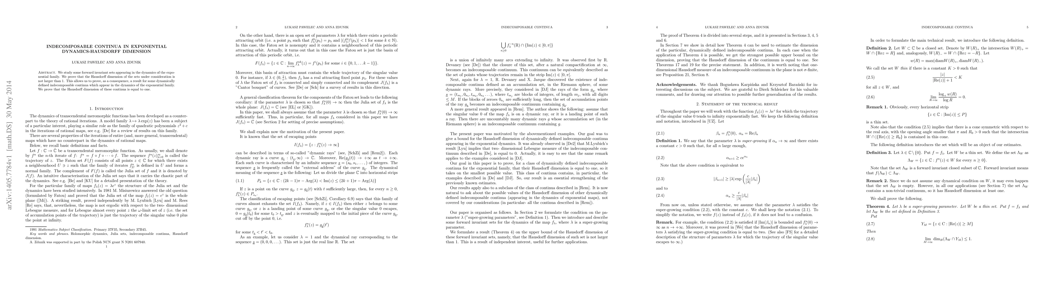 The paper employs complex dynamics theory, specifically focusing on the exponential family, to study forward invariant sets and their Hausdorff dimension.