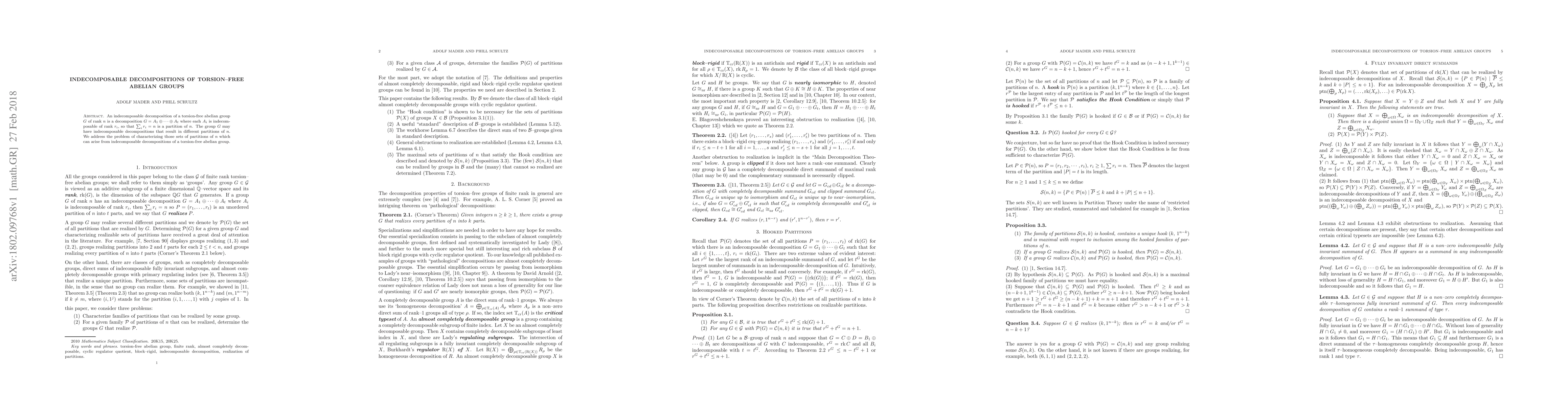 An indecomposable decomposition of a torsion-free abelian group $G$ of rank $n$ is a decomposition $G=A_1\oplus\cdots\oplus A_t$ where $A_i$ is indecomposable of rank $r_i$ so that $\sum_i r_i=n$ is a partition of $n$. The group $G$ may have decompositions that result in different partitions of $n$. We address the problem of characterising those sets of partitions of $n$ which can arise from indecomposable decompositions of a torsion-free abelian group.