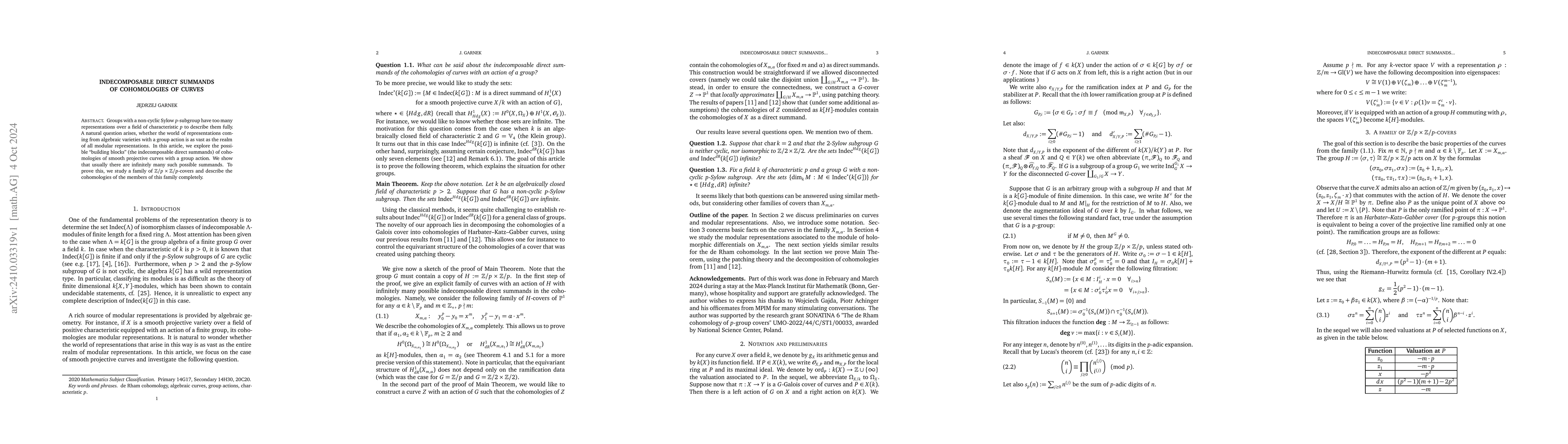 This paper investigates the indecomposable direct summands of the cohomologies of smooth projective curves with group actions, showing that typically there are infinitely many such summands. The authors achieve this by examining a family of $\mathbb Z/p \times \mathbb Z/p$-covers and fully describing their cohomologies.