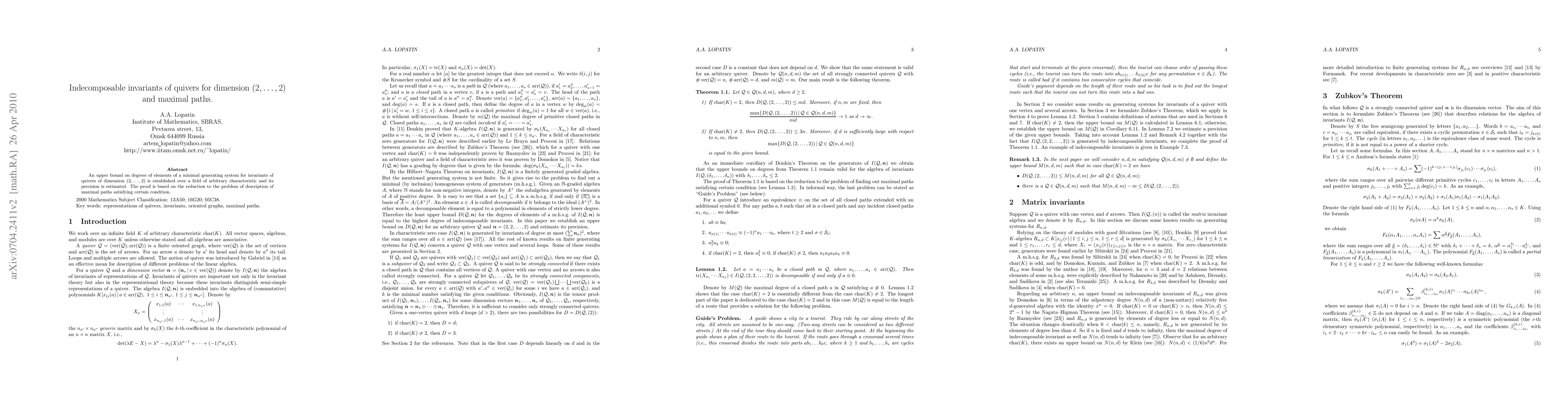 Summary: This paper establishes an upper bound for the degrees of elements in a minimal generating system of invariants for quivers of dimension (2,...,2), and estimates the precision of this bound. The proof hinges on reducing the problem to describing maximal paths under specific conditions.