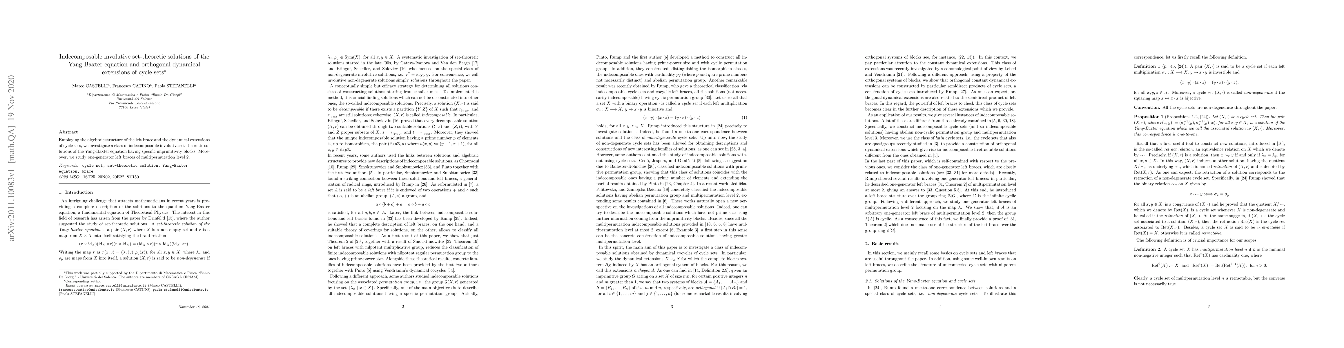 Summary: This paper explores indecomposable involutive solutions of the Yang-Baxter equation via left braces and cycle sets, focusing on specific imprimitivity blocks and one-generator left braces of multipermutation level 2. It examines the construction of orthogonal dynamical extensions of these structures.