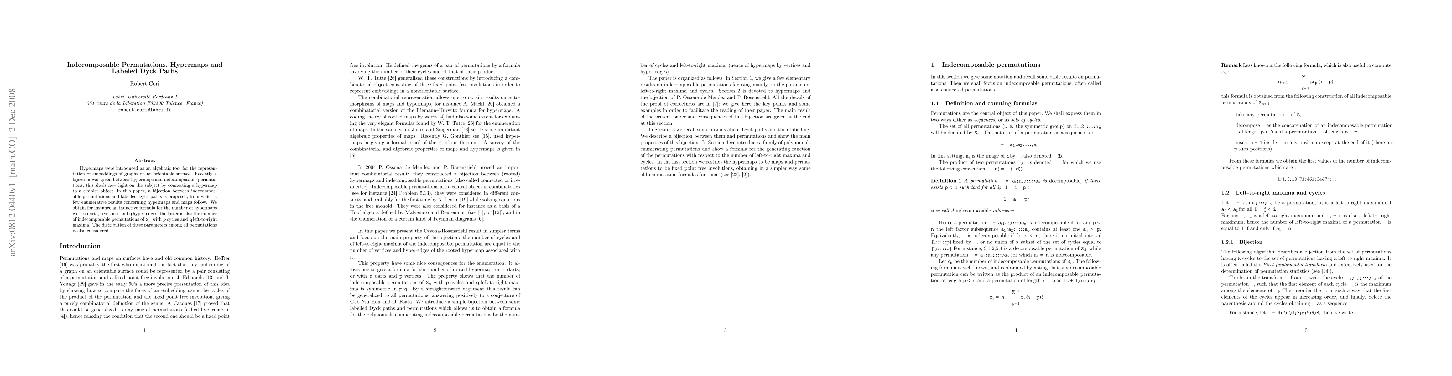 This paper establishes a bijection between indecomposable permutations and labeled Dyck paths, extending a recent connection between hypermaps and indecomposable permutations. It derives enumerative results, including an inductive formula for hypermaps and insights into the distribution of parameters among all permutations.