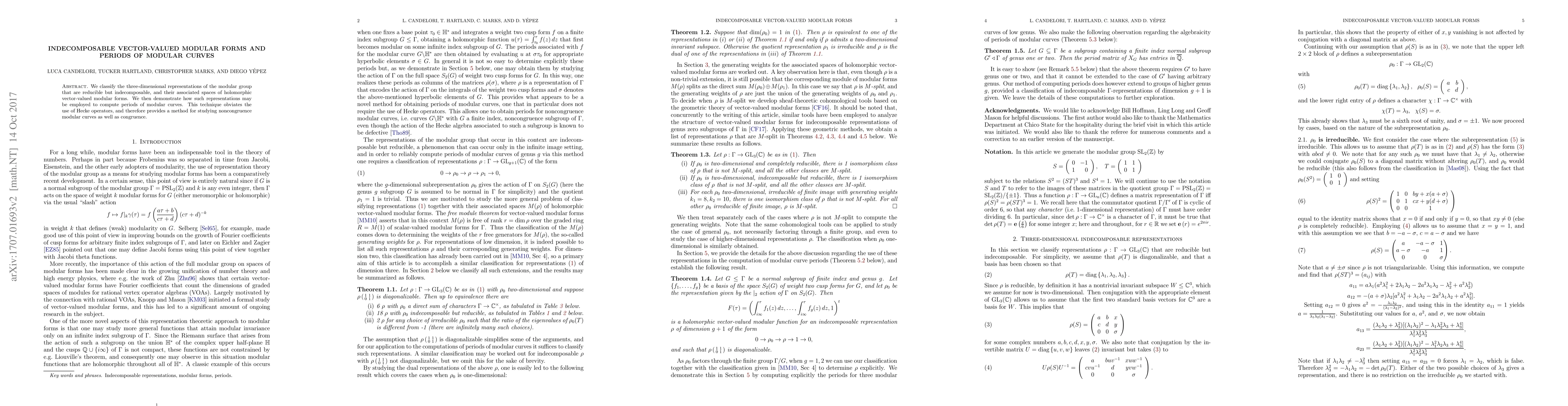 This paper classifies three-dimensional, reducible but indecomposable representations of the modular group and their holomorphic vector-valued modular forms. It also introduces a novel method for computing periods of modular curves without using Hecke operators, applicable to both congruence and noncongruence cases.