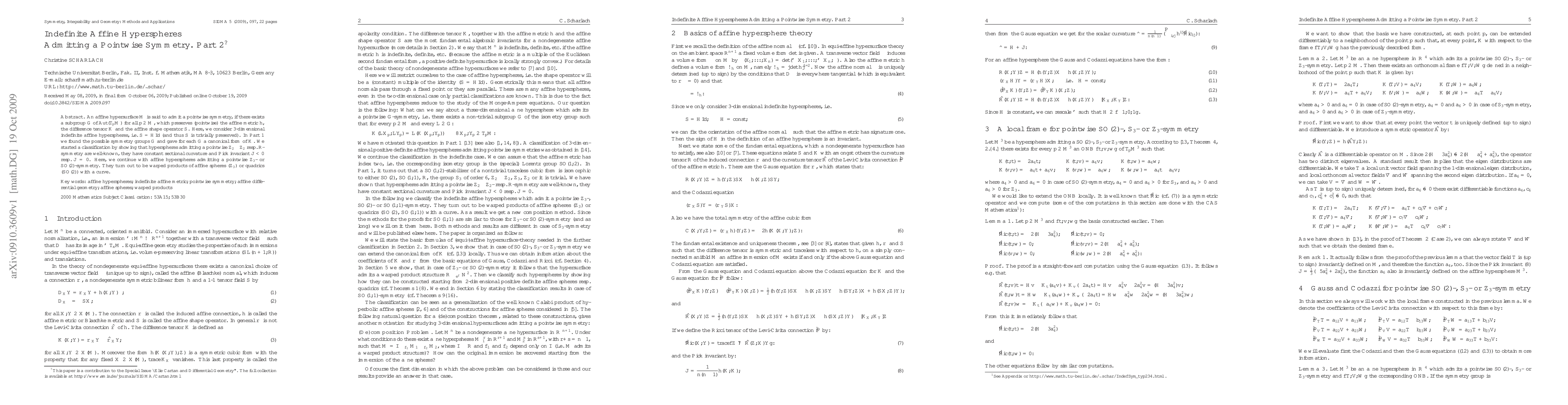 An affine hypersurface $M$ is said to admit a pointwise symmetry, if there exists a subgroup $G$ of ${\rm Aut}(T_p M)$ for all $p\in M$, which preserves (pointwise) the affine metric $h$, the difference tensor $K$ and the affine shape operator $S$. Here, we consider 3-dimensional indefinite affine hyperspheres, i.e. $S= HId$ (and thus $S$ is trivially preserved). In Part 1 we found the possible symmetry groups $G$ and gave for each $G$ a canonical form of $K$. We started a classification by showing that hyperspheres admitting a pointwise ${\mathbb Z}_2\times {\mathbb Z}_2$ resp. ${\mathbb R}$-symmetry are well-known, they have constant sectional curvature and Pick invariant $J<0$ resp. J=0. Here, we continue with affine hyperspheres admitting a pointwise ${\mathbb Z}_3$- or SO(2)-symmetry. They turn out to be warped products of affine spheres (${\mathbb Z}_3$) or quadrics (SO(2)) with a curve.