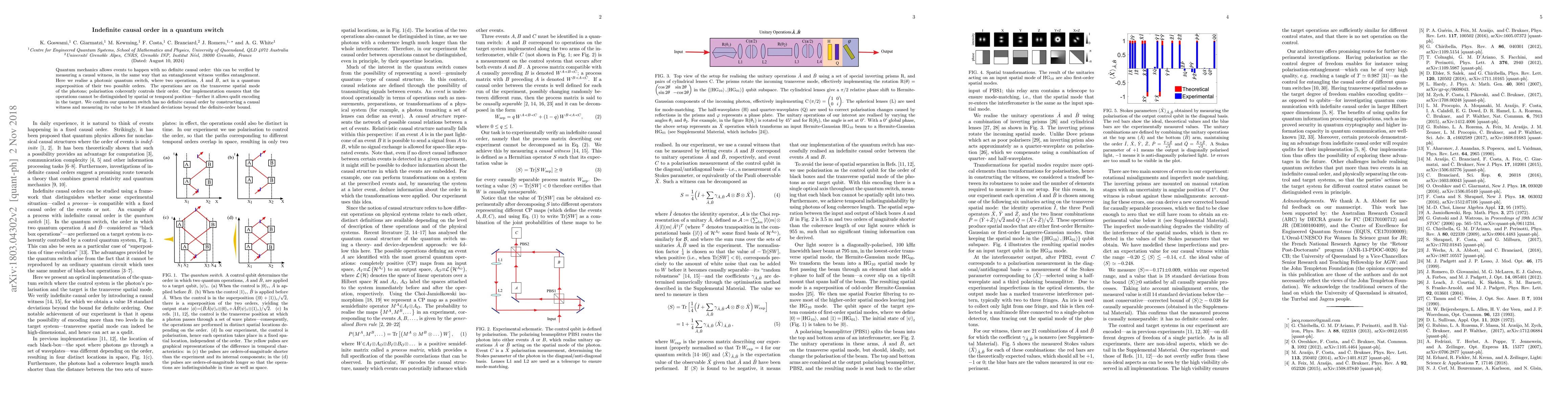 The paper presents a novel experimental realization of a quantum switch demonstrating indefinite causal order, along with a method to construct and measure a causal witness for verifying such a structure.