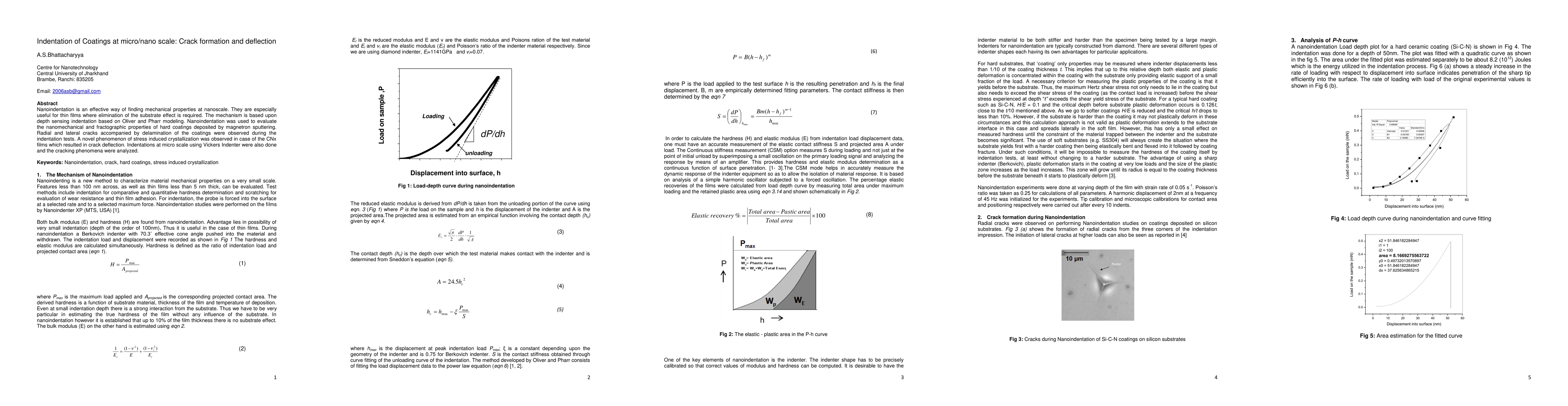 Nanoindentation is an effective way of finding mechanical properties at nanoscale. They are especially useful for thin films where elimination of the substrate effect is required. The mechanism is based upon depth sensing indentation based on Oliver and Pharr modeling. Nanoindentation was used to evaluate the nanomechanical and fractographic properties of hard coatings deposited by magnetron sputtering. Radial and lateral cracks accompanied by delamination of the coatings were observed during the indentation tests. A novel phenomenon of stress induced crystallization was observed in case of the CNx films which resulted in crack deflection. Indentations at micro scale using Vickers Indenter were also done and the cracking phenomena were analyzed.