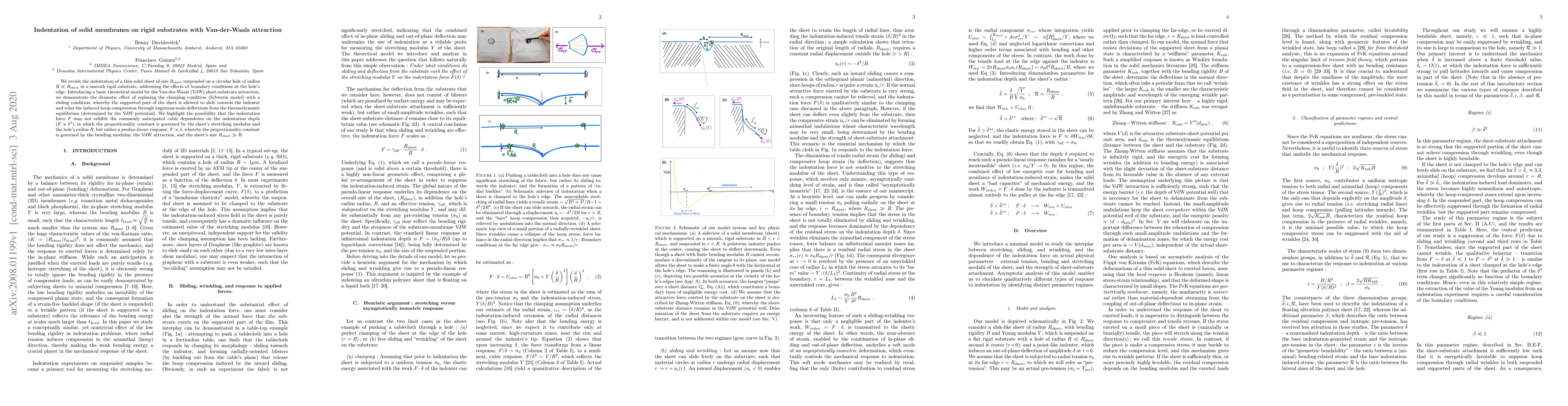 Researchers studied how a thin solid sheet deforms under Van-der-Waals attraction to a circular hole in a rigid substrate, finding that the deformation force does not always follow the expected cubic relationship with indentation depth.