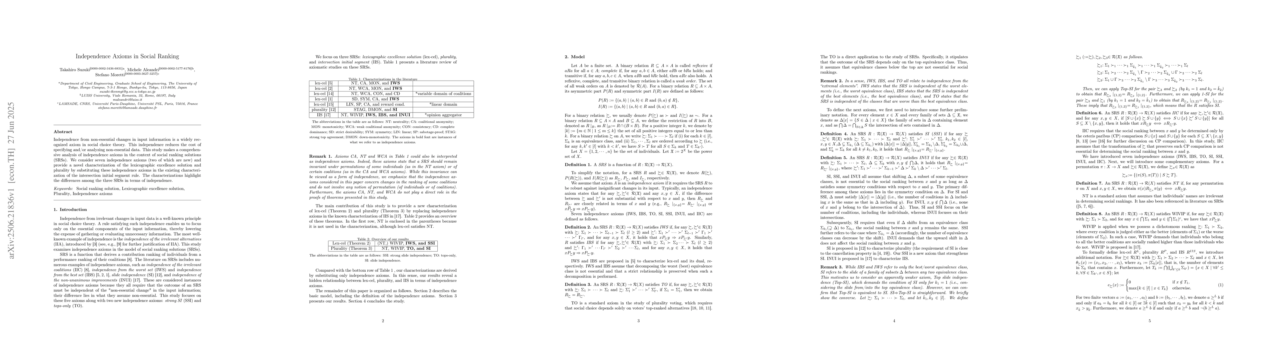 Independence from non-essential changes in input information is a widely recognized axiom in social choice theory. This independence reduces the cost of specifying and/or analyzing non-essential data. This study makes a comprehensive analysis of independence axioms in the context of social ranking solutions (SRSs). We consider seven independence axioms (two of which are new) and provide a novel characterization of the lexicographic excellence solution and plurality by substituting these independence axioms in the existing characterization of the intersection initial segment rule. The characterizations highlight the differences among the three SRSs in terms of independence.