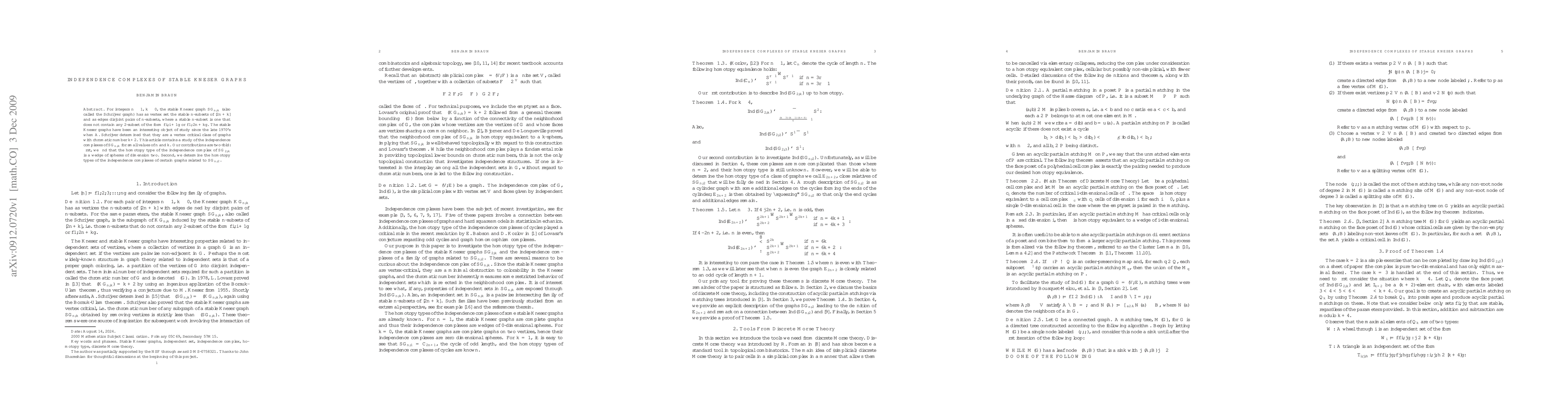 This paper investigates the independence complexes of stable Kneser graphs, focusing on their homotopy types for small values of n and k. The authors find that the independence complex of SG_{2,k} is a wedge of spheres of dimension two and determine the homotopy types of related graphs for SG_{n,2}.