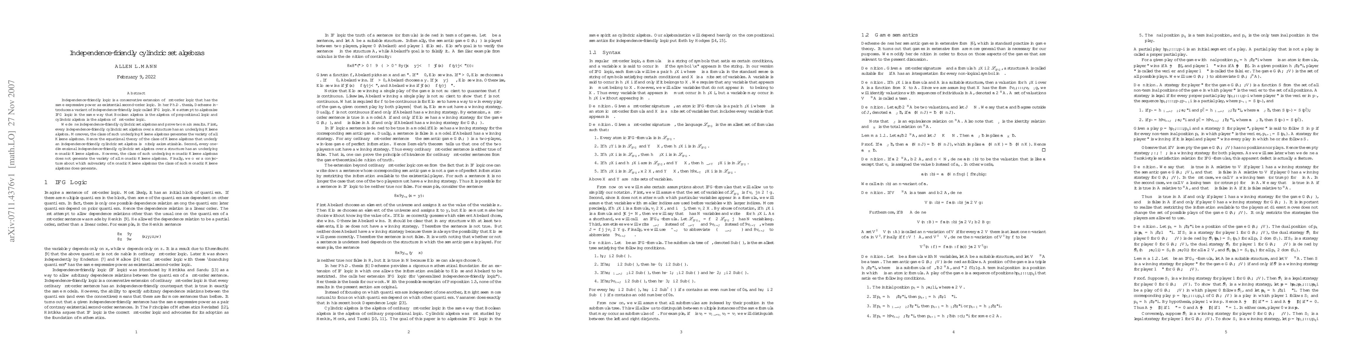 This paper algebraizes independence-friendly logic (IFG logic) by defining independence-friendly cylindric set algebras and proving that they have underlying Kleene algebras. The study concludes that these algebras' equational theory is finitely axiomatizable, while one-dimensional variants have underlying monadic Kleene algebras, though they do not generate all such algebras.