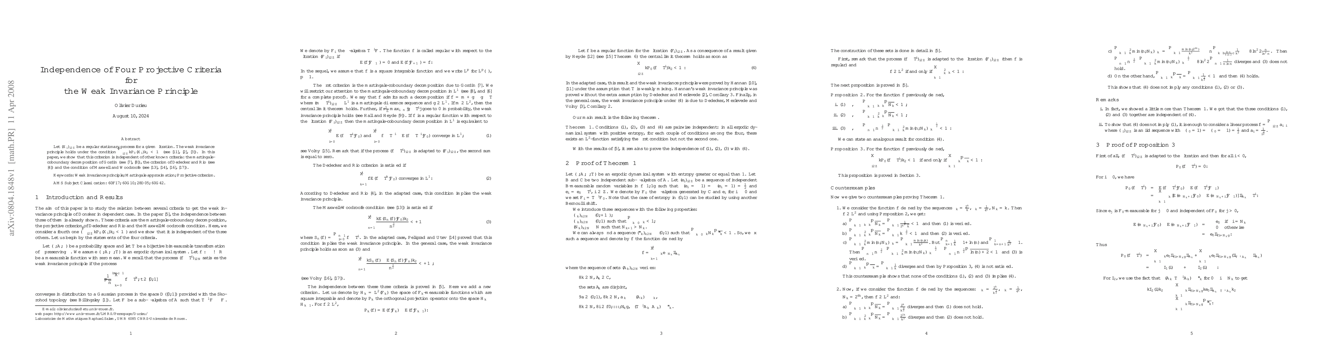 This paper demonstrates the independence of the weak invariance principle criterion, $\sum_{i\in\Z}\|P_0(X_i)\|_2<\infty$, from other known criteria including the martingale-coboundary decomposition, the Dedecker-Rio criterion, and the Maxwell-Woodroofe condition.