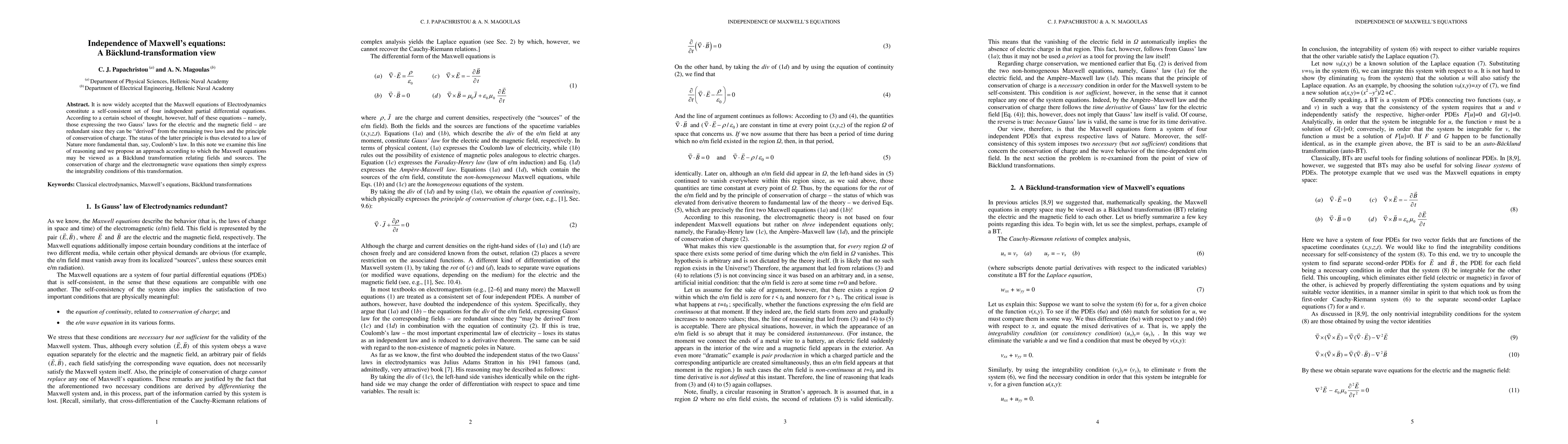 This paper explores whether Maxwell's equations are fully independent, suggesting that the Gauss' laws may be redundant. It proposes viewing the equations as a Bäcklund transformation, where the conservation of charge and wave equations are seen as integrability conditions.