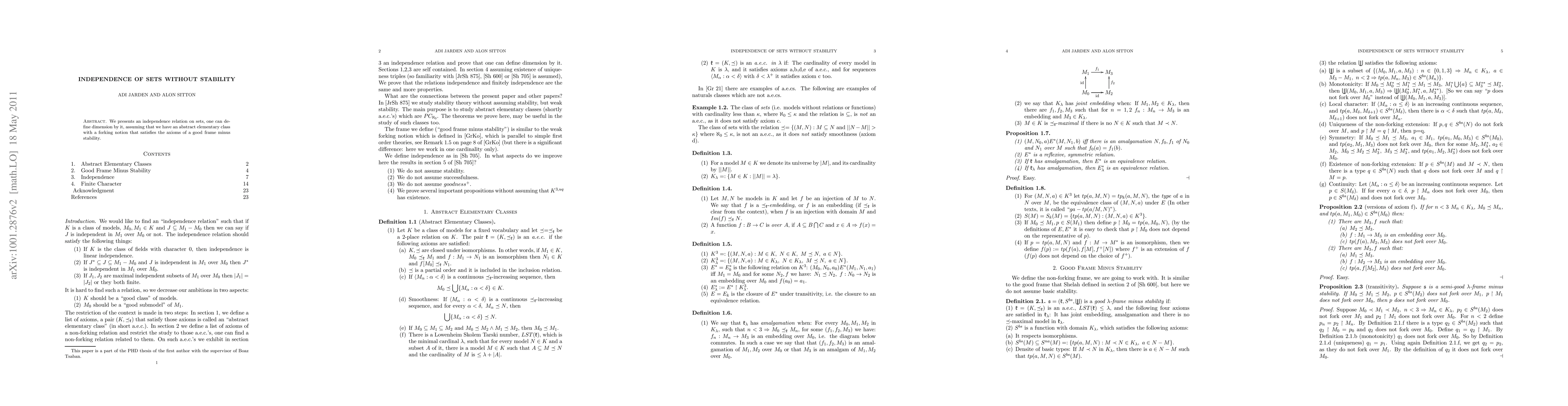 We presents an independence relation on sets, one can define dimension by it, assuming that we have an abstract elementary class with a forking notion that satisfies the axioms of a good frame minus stability.