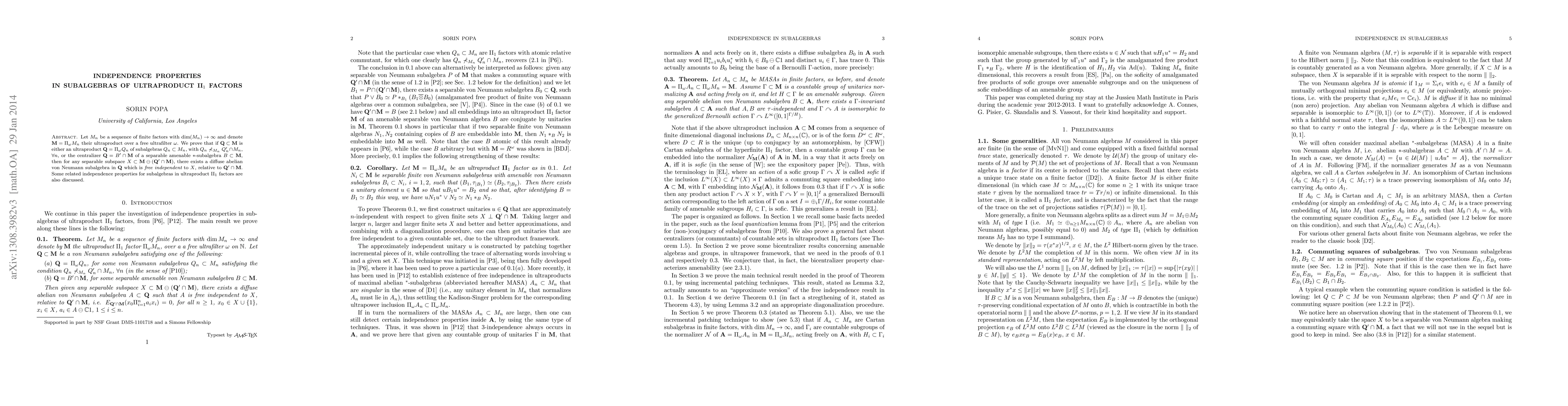The research extends previous work on independence in subalgebras of II1 factors by focusing on ultraproduct constructions and providing new insights into the structure of subalgebras within these complex algebraic objects.