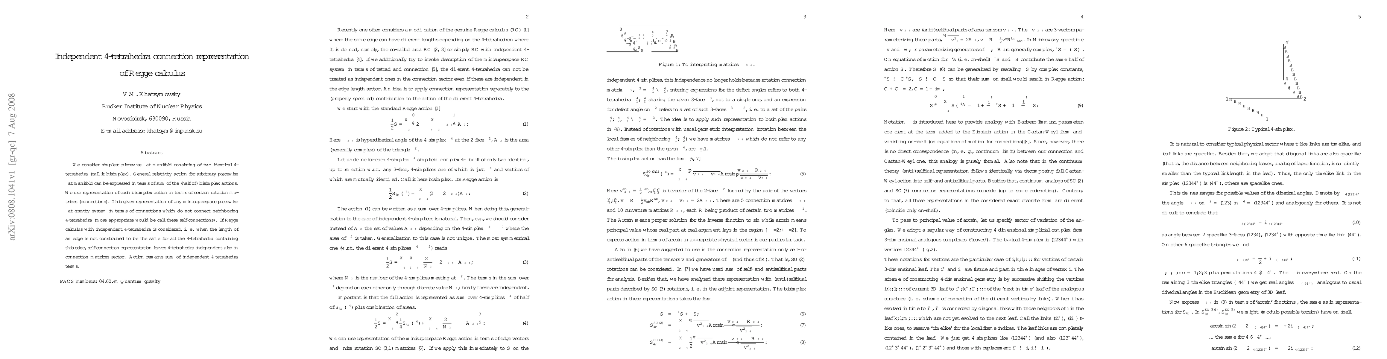 We consider simplest piecewise flat manifold consisting of two identical 4-tetrahedra (call it bisimplex). General relativity action for arbitrary piecewise flat manifold can be expressed in terms of sum of the (half of) bisimplex actions. We use representation of each bisimplex action in terms of certain rotation matrices (connections). This gives representation of any minisuperspace piecewise flat gravity system in terms of connections which do not connect neighboring 4-tetrahedra (more appropriate would be call these self-connections). If Regge calculus with independent 4-tetrahedra is considered, i. e. when the length of an edge is not constrained to be the same for all the 4-tetrahedra containing this edge, self-connection representation leaves 4-tetrahedra independent also in connection matrices sector. Action remains sum of independent 4-tetrahedra terms.
