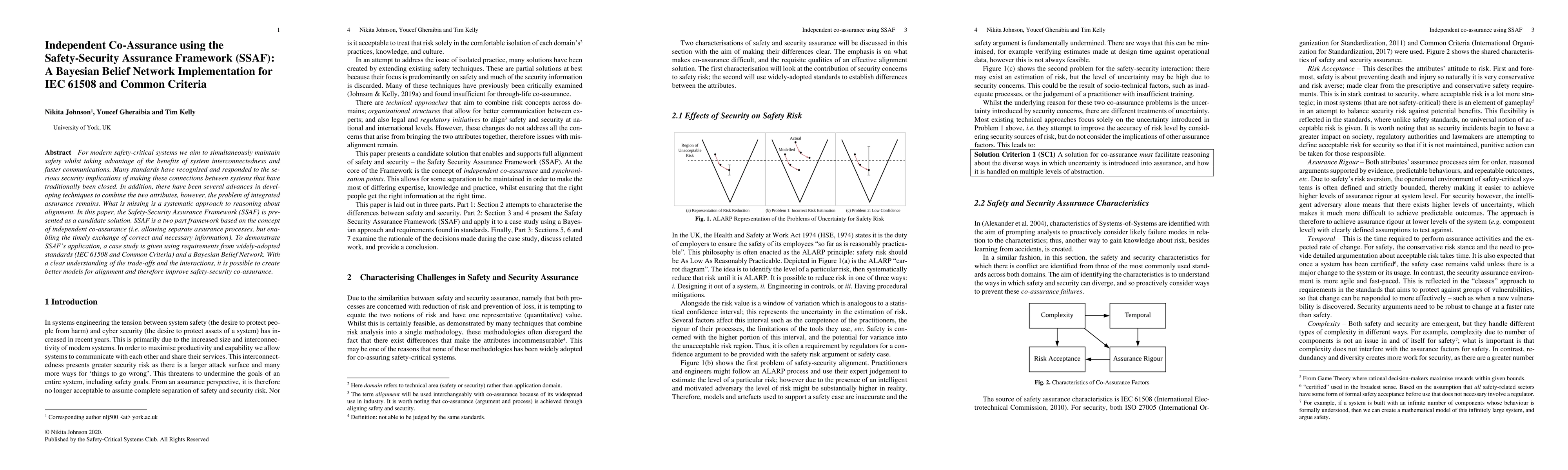 This paper proposes an implementation of the Safety-Security Assurance Framework (SSAF) using a Bayesian Belief Network to independently co-assure compliance with IEC 61508 and Common Criteria standards. The approach aims to enhance the assurance of safety and security in systems by integrating these two standards.