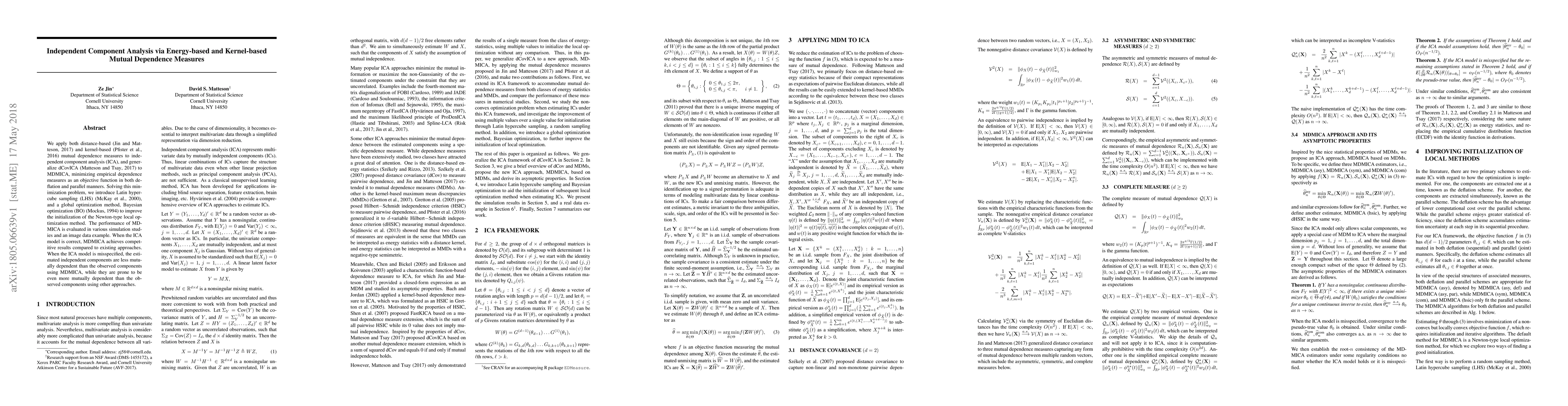 This paper introduces a new independent component analysis (ICA) method called MDMICA that uses empirical dependence measures to improve the estimation of independent components. It achieves competitive results when the ICA model is correct and outperforms other methods when the model is misspecified.