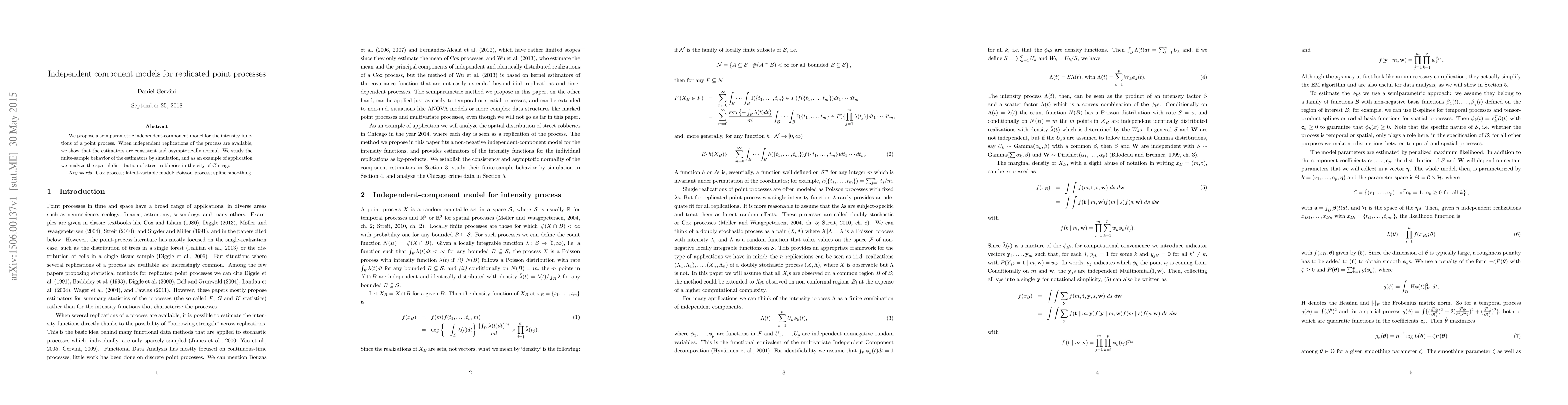 This paper proposes a semiparametric independent-component model for point processes, demonstrating consistent and asymptotically normal estimators for replicated processes. The model is applied to analyze the spatial distribution of street robberies in Chicago, showcasing its practical utility.