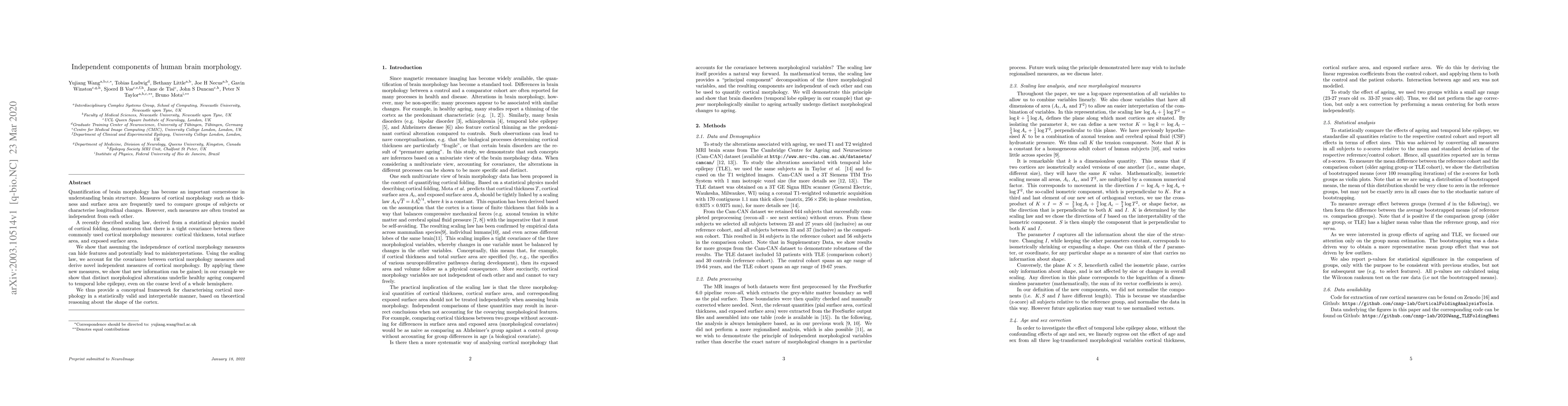 Quantification of brain morphology has become an important cornerstone in understanding brain structure. Measures of cortical morphology such as thickness and surface area are frequently used to compare groups of subjects or characterise longitudinal changes. However, such measures are often treated as independent from each other. A recently described scaling law, derived from a statistical physics model of cortical folding, demonstrates that there is a tight covariance between three commonly used cortical morphology measures: cortical thickness, total surface area, and exposed surface area. We show that assuming the independence of cortical morphology measures can hide features and potentially lead to misinterpretations. Using the scaling law, we account for the covariance between cortical morphology measures and derive novel independent measures of cortical morphology. By applying these new measures, we show that new information can be gained; in our example we show that distinct morphological alterations underlie healthy ageing compared to temporal lobe epilepsy, even on the coarse level of a whole hemisphere. We thus provide a conceptual framework for characterising cortical morphology in a statistically valid and interpretable manner, based on theoretical reasoning about the shape of the cortex.