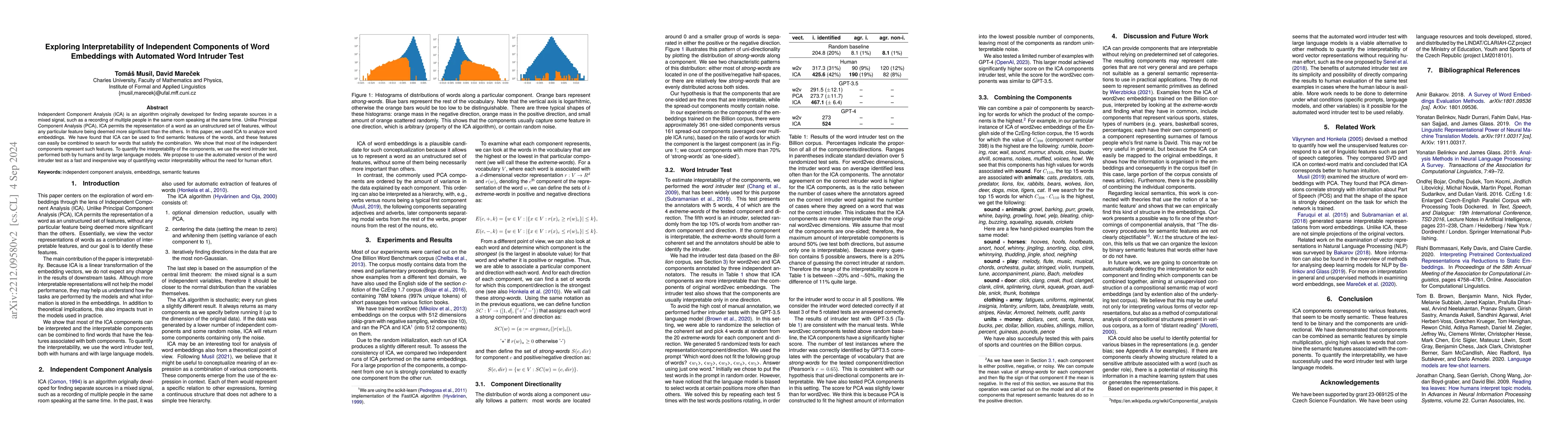 This paper applies Independent Component Analysis (ICA) to word embeddings to uncover semantic features, demonstrating that some components represent stable semantic features that can be combined to find relevant words. The study highlights the potential of ICA in linguistic analysis.